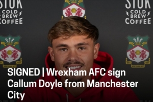 體育資訊8月22日訊 英冠升班馬雷克瑟姆官方宣布21歲曼城后衛(wèi)卡勒姆-多伊爾加盟,簽約至2029年。據(jù)悉,多伊爾的轉(zhuǎn)會費(fèi)為750萬鎊,曼城擁有回購條款及25%的二轉(zhuǎn)分成。