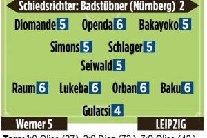 體育資訊8月23日訊 德甲首輪比賽,拜仁主場6-0擊敗萊比錫,《圖片報》對兩隊球員和教練進(jìn)行了評分,凱恩、迪亞斯、格納布里、奧利塞1分最高。
