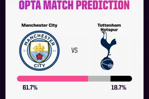 體育資訊08月23日訊 今晚19:30,英超第2輪焦點(diǎn)戰(zhàn)曼城vs熱刺。曼城首輪4-0戰(zhàn)勝狼隊(duì),而熱刺3-0戰(zhàn)勝伯恩利,此役瓜迪奧拉確認(rèn)羅德里、福登可以出戰(zhàn),本輪誰(shuí)能爭(zhēng)得兩連勝?Opta超級(jí)計(jì)算機(jī)預(yù)測(cè),曼城的勝率為61.7%。