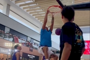 體育資訊8月23日訊 在中國行鄭州站活動現場,阿隆-戈登各種秀扣籃。