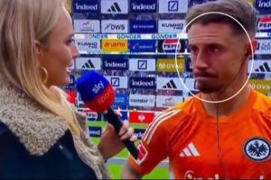 賽后的場(chǎng)邊采訪,天空體育的女記者將弗里德?tīng)栒`認(rèn)為法蘭克福球員,談到比賽時(shí)問(wèn)他對(duì)贏球是否滿(mǎn)意。弗里德?tīng)栃α诵Γ硎咀约簛?lái)自不萊梅而不是法蘭克福。記者非常尷尬,趕緊向弗里德?tīng)柋硎玖饲敢?。弗里德?tīng)杽t是做了個(gè)手勢(shì),似乎示意想結(jié)束此次采訪。