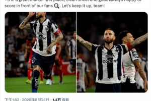 拉莫斯社媒曬出比賽照片,配文:“感覺真棒!在一場精彩的比賽中全取三分——榜首、零封和進(jìn)球,在我們的球迷面前破門總是很開心,讓我們繼續(xù)加油!”