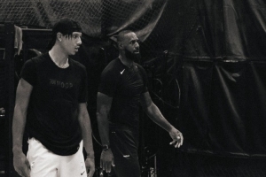 約翰遜曬出一組個人訓(xùn)練照,其中包括一張與湖人前鋒詹姆斯的訓(xùn)練合照。