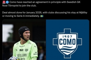 體育資訊8月25日訊 據(jù)知名轉(zhuǎn)會(huì)專(zhuān)家羅馬諾報(bào)道,科莫已經(jīng)與瑞典門(mén)將諾埃爾-托爾奎斯特達(dá)成原則性一致。