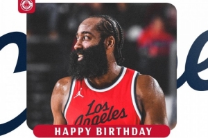 體育資訊8月27日訊 今天是快船球星哈登的36歲生日,球隊官推發(fā)文祝他生日快樂。