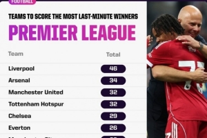以下為英超歷史絕殺次數(shù)最多球隊top10: