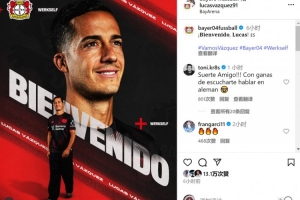 勒沃庫森官方社媒宣布免簽巴斯克斯,他的皇馬老隊(duì)友克羅斯留言道:“祝你好運(yùn),朋友,很期待聽到你說德語!”