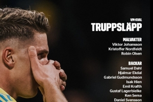中前場(chǎng):亞辛-阿亞里(布萊頓)、伯恩哈德森(基爾)、貝里瓦爾(熱刺)、伊蘭加(紐卡)、埃利亞松(雅典AEK)、約克雷斯(阿森納)、伊薩克(紐卡)、卡爾斯特羅姆(烏迪內(nèi)斯)、雨果-拉爾森(法蘭克福)、喬丹-拉爾森(哥本哈根)、納納西(斯特拉斯堡)、本杰明-尼格倫(凱爾特人)、薩萊特羅斯(AIK索爾納)