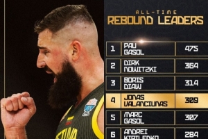 本場(chǎng)比賽,立陶宛球員瓦蘭丘納斯13投7中、罰球6中4,砍下全場(chǎng)最高的18分和9籃板,外加1助攻1蓋帽。