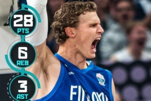 此役,芬蘭球星馬爾卡寧出戰(zhàn)32分23秒,投籃15中7,三分4中2,罰球14中12,砍下28分6板3助2斷,正負(fù)值為0。