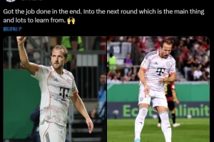 體育資訊8月28日訊 在拜仁3-2擊敗韋恩,晉級德國杯第二輪后,凱恩更新了社交媒體。