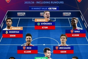 體育資訊7月8日訊 德國轉會市場列出了阿森納新賽季的潛在首發(fā)陣容,羅德里戈、約克雷斯、薩卡組成三叉戟。