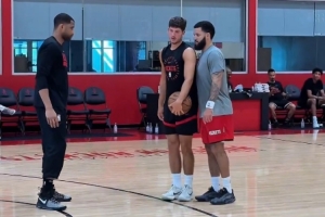 體育資訊8月29日訊 今日火箭官媒曬出謝潑德和范弗里特一起訓(xùn)練的視頻,期間范弗里特不忘在突破方面對著小將指點(diǎn)一番。