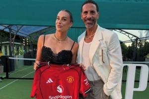 體育資訊7月8日訊 曼聯(lián)官推今天曬照,發(fā)出了白俄羅斯女子網(wǎng)球運動員薩巴倫卡與名宿里奧-費迪南德的合照。