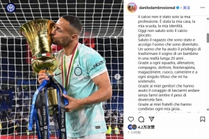 體育資訊8月30日訊 今日,國米舊將丹布羅西奧在個(gè)人Ins上發(fā)表長文,宣布退役。