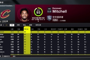 米切爾93是隊(duì)內(nèi)最高,小莫布里89排在第二,加蘭87、阿倫84分列第三、第四,亨特80排第五。