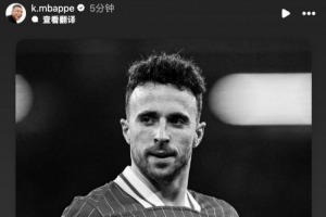 體育資訊7月3日訊 利物浦前鋒若塔因車禍不幸離世,姆巴佩通過社媒曬照配文哀悼。