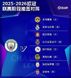 體育資訊08月30日訊 歐足聯(lián)官方公布歐冠聯(lián)賽階段賽程,曼城賽程如下。