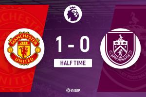 半場(chǎng)結(jié)束,曼聯(lián)暫1-0伯恩利。