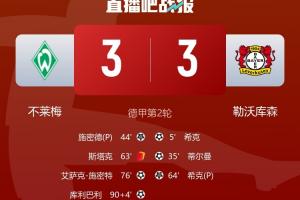 體育資訊08月30日訊 德甲第2輪,藥廠3-3遭不萊梅絕平。