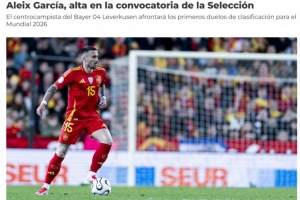 體育資訊8月31日訊 西班牙國家隊發(fā)布官方公告,宣布補招勒沃庫森28歲中場阿萊克斯-加西亞進世預賽名單。