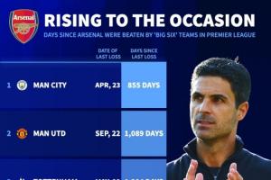 體育資訊08月31日訊 據(jù)德轉(zhuǎn)統(tǒng)計,阿森納已有超過2年未在英超中輸給其他5支“BIG6”球隊(duì),在“BIG6”球隊(duì)身上相互取得的積分也位列第一。