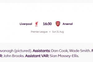 體育資訊08月31日訊 英超官方宣布,今天利物浦vs阿森納的裁判組調(diào)整,原VAR裁判薩里斯布里被更換為約翰-布魯克斯。