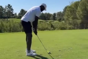 詹姆斯曬與友人冒著102華氏度(38.9攝氏度)高溫練習(xí)打高爾夫的一系列動態(tài)及合影。