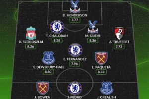 后衛(wèi):索博斯洛伊(利物浦,8.26分)、查洛巴(切爾西,8.38分)、格伊(水晶宮,8.36分)、特魯弗特(伯恩茅斯,7.72分)