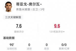 體育資訊7月9日訊 弗魯米嫩塞在世俱杯半決賽被切爾西2-0淘汰,蒂亞戈-席爾瓦本場數(shù)據(jù)如下: