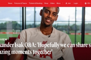 體育資訊9月2日訊 利物浦已經(jīng)官宣引進紐卡中鋒伊薩克,后者也接受了俱樂部官網(wǎng)的問答采訪。