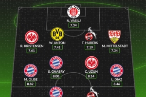 中場:奧利塞(拜仁,8.82分)、格納布里(拜仁,8.00分)、詹-烏尊(法蘭克福,8.14分)、路易斯-迪亞斯(拜仁,8.46分)