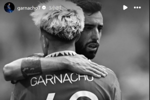 加納喬社媒曬出自己與前隊友B費(fèi)的賽場合照,當(dāng)時他身穿曼聯(lián)49號球衣。