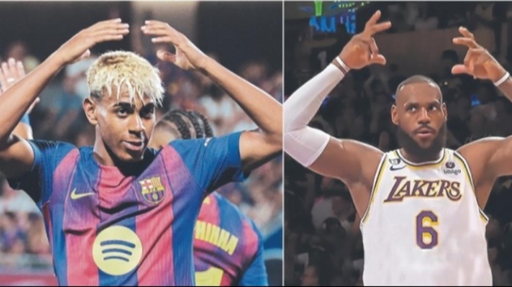 據(jù)西班牙媒體《世界體育報》報道,亞馬爾新慶祝的靈感來自NBA球星勒布朗-詹姆斯,LBJ是他的偶像。
