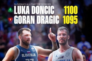 根據(jù)數(shù)據(jù)統(tǒng)計,此戰(zhàn)之后,東契奇的國家隊生涯總得分來到1100分,他超越德拉季奇,成為了斯洛文尼亞男籃隊史得分王。