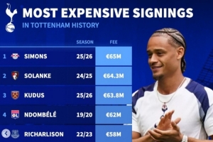 體育資訊9月5日訊 熱刺主席列維官宣退休,《轉(zhuǎn)會市場》也統(tǒng)計了他執(zhí)掌熱刺期間的最貴引援情況,孫興慜未進入前十。
