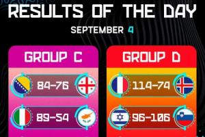 體育資訊09月05日訊 男籃歐錦賽當?shù)貢r間9月4日的6場小組賽全部結(jié)束,詳細賽果如下: