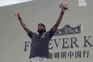 詹姆斯下午現(xiàn)身于成都萬象城出席活動(dòng),并來到外場冒雨與現(xiàn)場大量球迷熱情互動(dòng)。