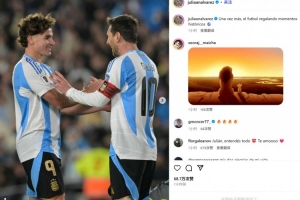 阿爾瓦雷斯在賽后也曬出他和梅西的慶祝照,并配文:“又一次,足球奉上了歷史性時(shí)刻?!?/p>