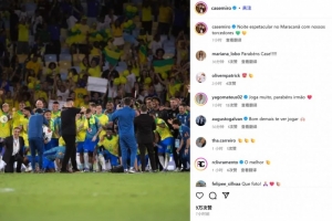 他也在賽后通過社媒曬出全隊(duì)的合照,并配文道:“和球迷們?cè)隈R拉卡納度過精彩的夜晚。”