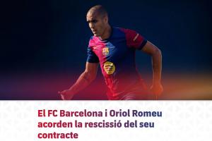 巴塞羅那足球俱樂部感謝奧里奧爾-羅梅烏展現(xiàn)出的職業(yè)精神、奉獻(xiàn)態(tài)度與全心投入,并祝愿他未來好運(yùn)相伴、一切順利。