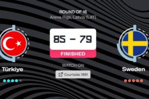 第三節(jié),土耳其找回了自己的節(jié)奏,單節(jié)凈勝13分,將戰(zhàn)局的優(yōu)勢扳回到了自己手上。末節(jié),瑞典再度發(fā)力一度將比分追平,但土耳其依靠全隊的出色表現(xiàn),穩(wěn)穩(wěn)拿下比賽,晉級八強。
