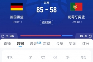 體育資訊9月6日訊 男籃歐錦賽1/8決賽,葡萄牙男籃58-85不敵德國男籃。