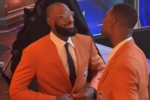 詹姆斯今日也來到了現(xiàn)場,并穿上了名人堂夾克!