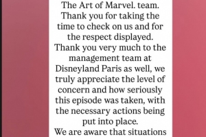 “致巴黎迪士尼樂園管理團(tuán)隊(duì),親愛的各位,我們對紐約迪士尼酒店-漫威藝術(shù)的支持和關(guān)懷表示感謝。感謝你們抽出時間關(guān)心我們,并展現(xiàn)出尊重。我們也非常感謝巴黎迪士尼樂園的管理團(tuán)隊(duì),我們真誠地感激你們對此事件的重視以及所采取的必要措施。