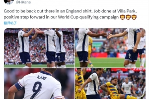 英格蘭隊長凱恩更新社媒動態(tài),曬出比賽照片,配文:“很高興再次身穿英格蘭隊球衣出戰(zhàn),在維拉公園完成了任務(wù),這是我們在世界杯預(yù)選賽征程中向前邁出的積極一步?!?/p>