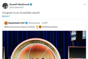 威少在社媒上向這屆名人堂成員送上了祝賀,寫道:“恭喜他們,了不起的一屆!??!”