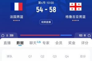 體育資訊9月7日訊 男籃歐錦賽1/8決賽,格魯吉亞男籃三節(jié)打完58-54領先法國男籃。