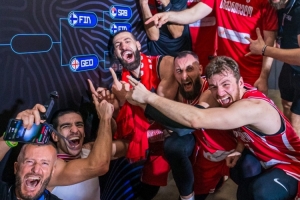 這是格魯吉亞男籃歷史首次打進歐錦賽八強。賽后的格魯吉亞眾將在晉級墻前興奮合影。