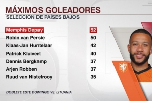 體育資訊9月8日訊 荷蘭在本輪世預賽3-2力克立陶宛,德佩梅開二度,并登頂荷蘭隊史射手王。